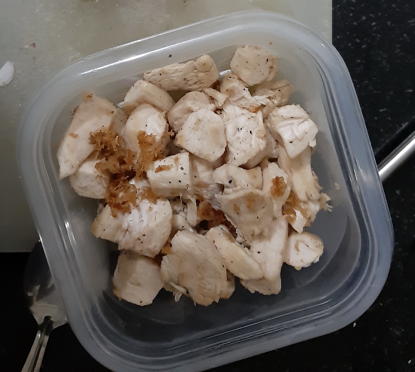 - In a larger pot, brown chicken at a high temp. We do not need to cook it thoroughly; Just so as to caramelize it and to get a flavor.