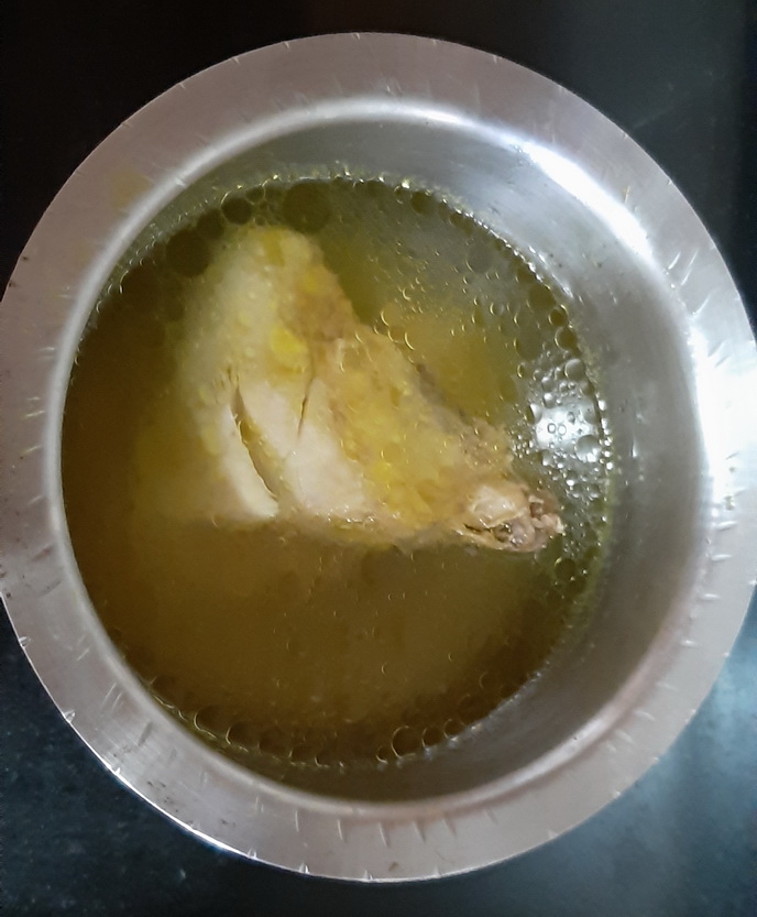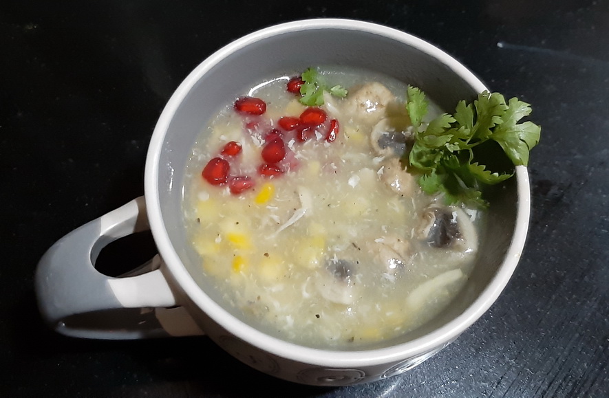- Add Corn flour to a point that the broth becomes thick and pastie