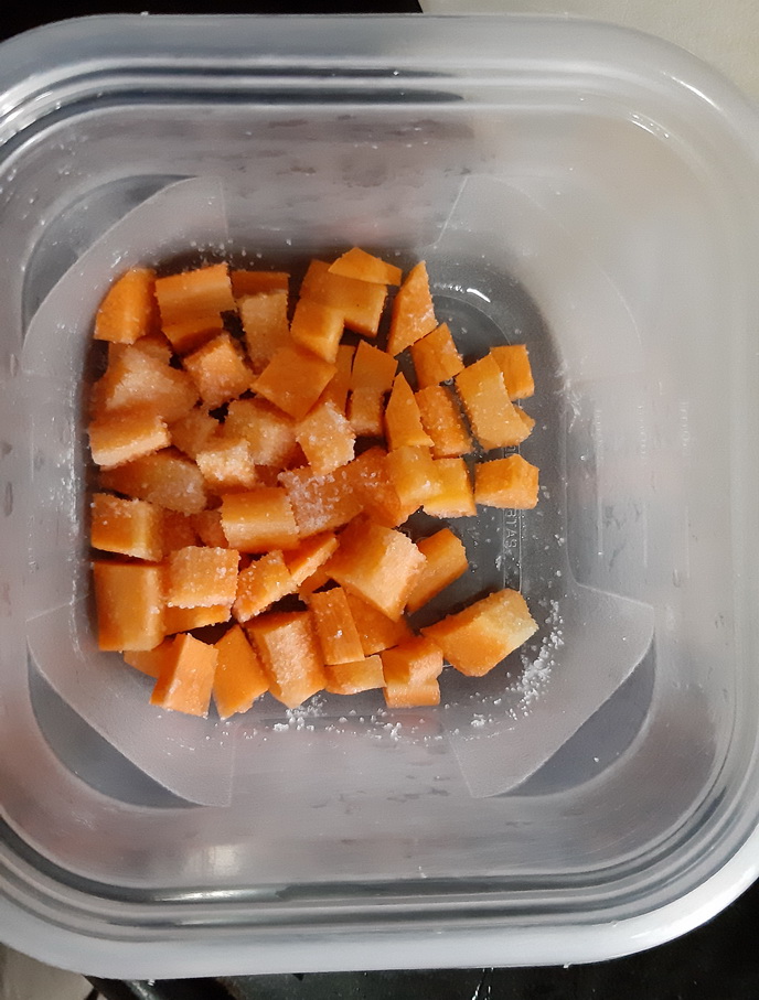 - Half cook sweet corn seeds by boiling them in the mix of water and half a table spoon of salted butter
