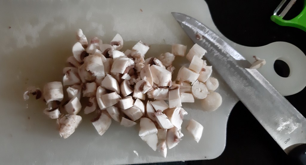 - Cut mushrooms and boil them in salt and pepper as per taste