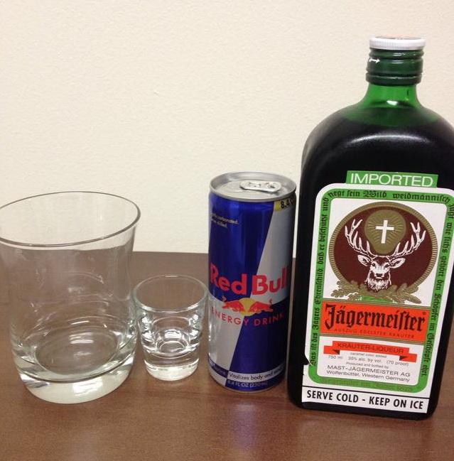 - Prepare half a shot of Jagermeister