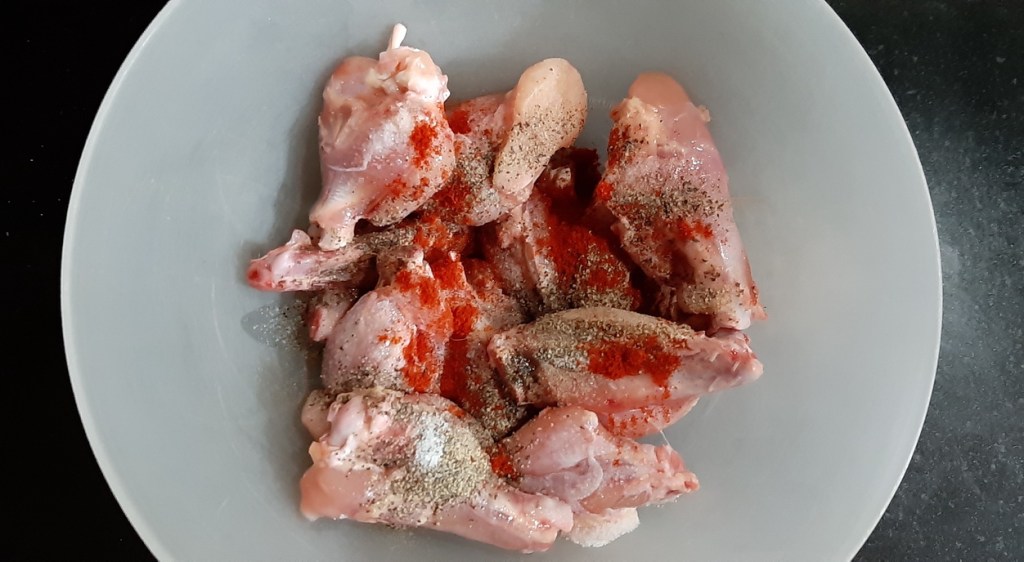 - In a large bowl, add raw chicken wings. Dab them with a tissue paper so there is no water left on them