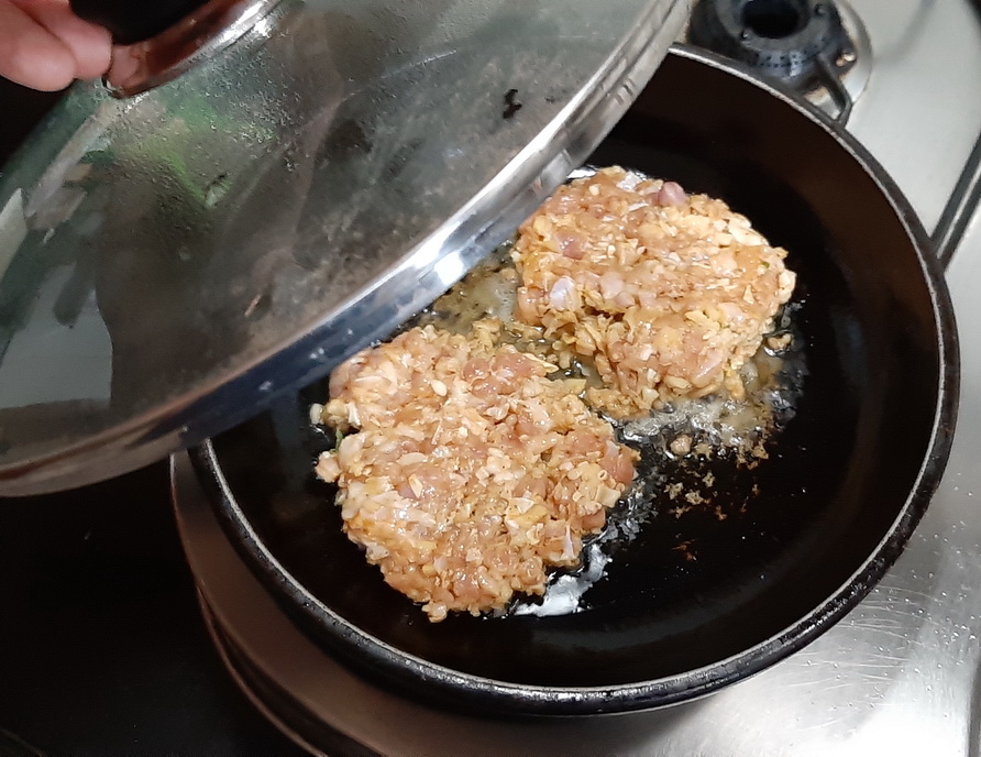 - Pre-heat a pan with 3-4 tablespoons of olive oil and place the patty in the pan.