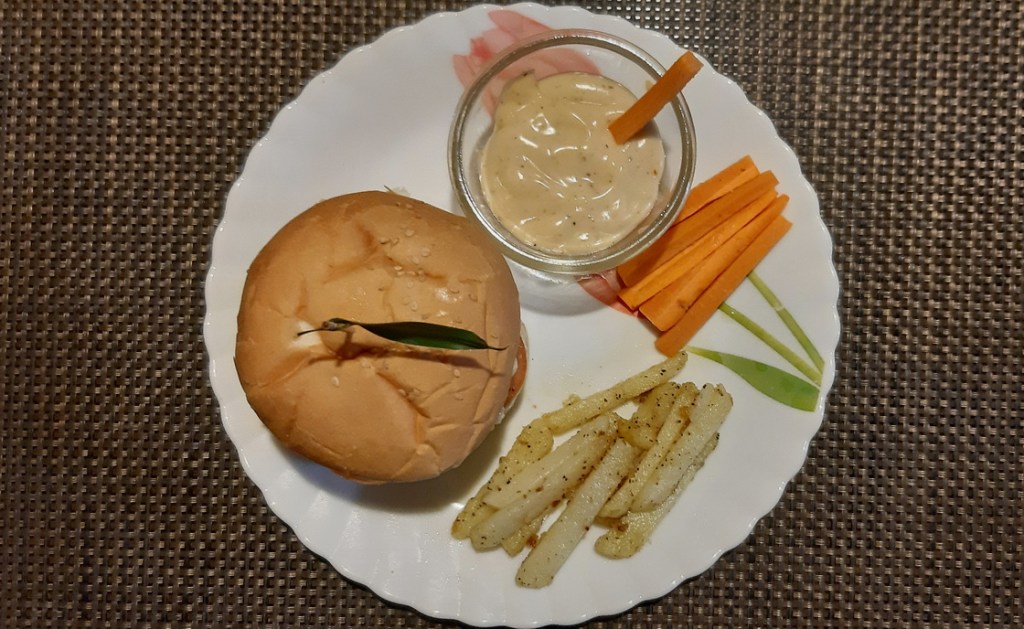 - NOTE: it is a good idea to add mayonnaise or the cheese bread spread on the lower bun. The idea of doing this is to prevent the liquid from onion and tomato or the sauces to seep into the bread below. The mayo acts a sealant between the bread and the vegetables