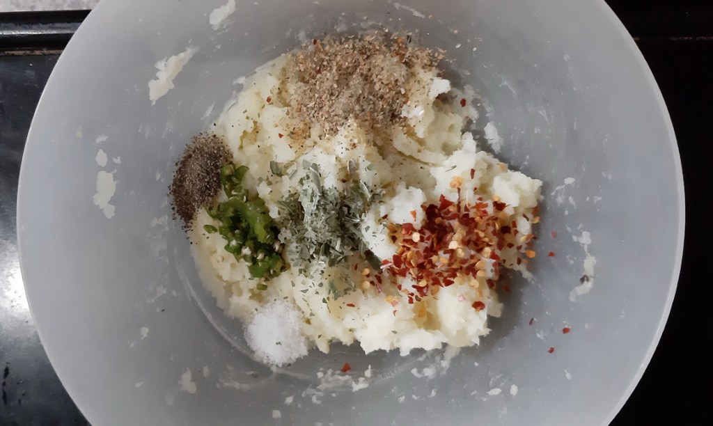 - Mash the potatoes thoroughly using a potato masher and add all the spices to it.