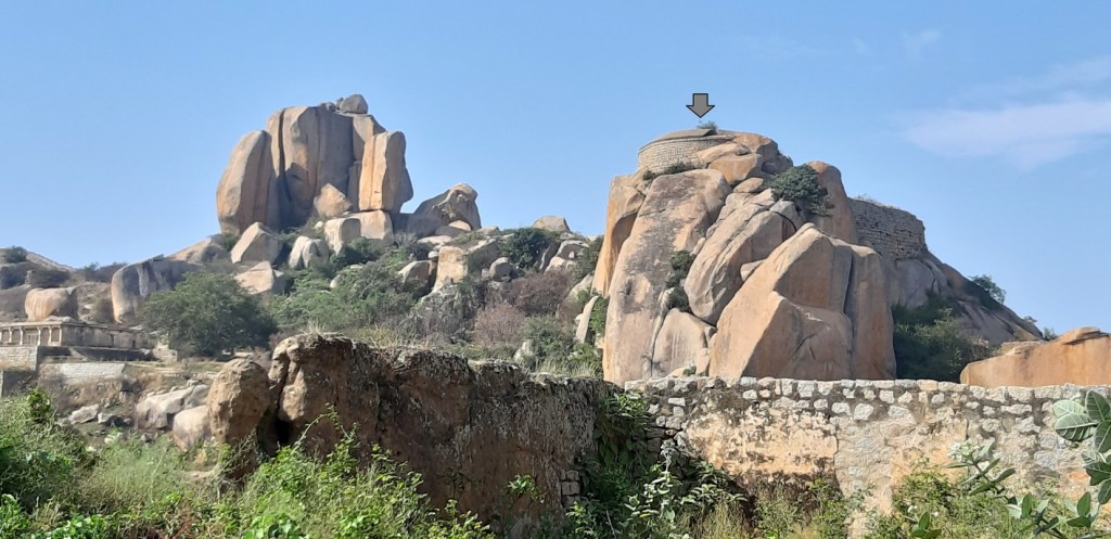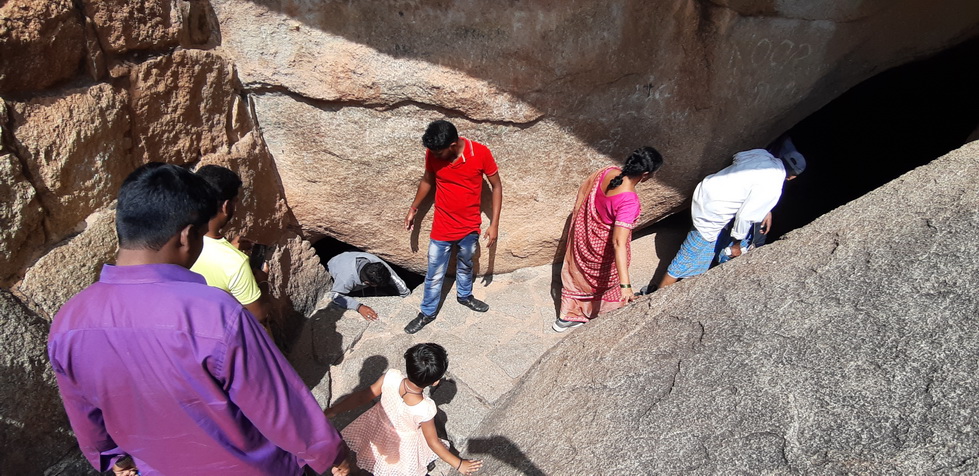 A chance sighting of a man entering the Chitradurga fort through a hole led to a plan to enter the fort through that hole in the rocks. A guard, who was on duty there had gone home for lunch. While at his meal break, his wife, Obavva, stepped out to collect drinking water from a pond near the hole in the rock where she noticed the enemy army trying to enter the fort through the gap in the rocks.