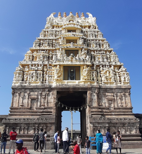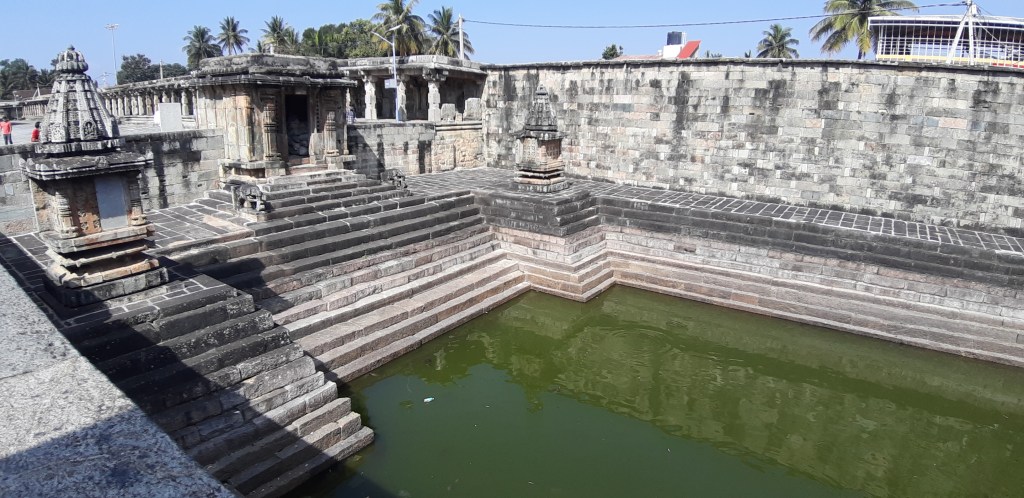 There is a Pushkarni or stepped well to the right side of the main entrance. The dravida style rajagopuram at the entrance was a later addition by the Vijayanagar kings.